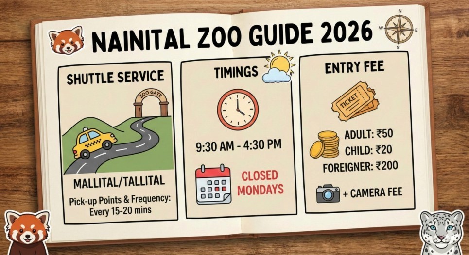 Planning a trip to Nainital and wondering how to visit the famous high-altitude zoo?This Nainital Zoo Guide (2026): Shuttle Service, Timings & Entry Fee covers everything you need from entry tickets and mandatory shuttle service to updated timings and helpful tips for families and first-time visitors. Officially known as Pt. G.B. Pant High Altitude Zoo, Nainital Zoo is one of the very few zoos in India located at such a high altitude. Surrounded by dense Himalayan forests, it offers a calm, educational, and nature-rich wildlife experience away from city crowds. About Pt. G.B. Pant High Altitude Zoo, Nainital The Pt. G.B. Pant High Altitude Zoo is one of India’s highest zoological parks, situated at an altitude of around 2,100 meters in the picturesque town of Nainital. Established in 1995, the zoo is managed by the Uttarakhand Forest Department and spans over 4 hectares of lush forest land. Unlike conventional city zoos, this high-altitude zoo focuses on Himalayan wildlife conservation, providing natural habitats for species adapted to the cold climate. It serves both as a tourist attraction and a research centre for rare and endangered species. Key Highlights of the Zoo: Nainital Zoo Timings (2026 Updated) Understanding Nainital Zoo timings helps you avoid crowds and enjoy animal activity. Opening Hours: Animals are most active before noon, making mornings the best time to visit. Nainital Zoo Entry Fee (2026) Planning your visit? Here’s the updated Nainital Zoo entry fee (2026) so you know what to expect before you go. The zoo offers affordable pricing for all visitors, making it a great choice for families, students, and nature lovers alike. Entry fees are structured to support the conservation efforts of Pt. G.B. Pant High Altitude Zoo and ensure a pleasant experience for everyone. Best Time to Visit Nainital Zoo The zoo remains open most of the year, but timing matters. Summer (March to June): This is the best season to visit Nainital Zoo. The weather is pleasant, animals are more active, and the shuttle service runs smoothly. Morning visits are ideal during this time. Monsoon (July to September): The surroundings turn lush and green, but frequent rain and slippery paths may affect the experience. Animal sightings can be limited, and occasional weather-related restrictions are possible. Winter (October to February): Cold temperatures and fog are common, especially in the mornings. Some animals may stay in indoor enclosures, but clear winter days still offer a peaceful, crowd-free visit. Nainital Zoo Location & How to Reach Nainital Zoo Location:Nainital Zoo, officially known as Pt. G.B. Pant High Altitude Zoo, is located on Sher Ka Danda hill, about 3 km from Nainital Mall Road. The zoo is surrounded by dense Himalayan forests and offers panoramic views of the town. How to Reach Nainital Zoo: Nearby Attractions to Combine with Zoo Visit A visit to Nainital Zoo can be easily combined with several nearby attractions, making it perfect for a half-day sightseeing plan. Most of these places are close to Mall Road and easily accessible after your zoo visit. Things You Can See at Nainital Zoo Nainital Zoo is known for showcasing rare and high-altitude Himalayan wildlife in a natural forest setting. The zoo focuses on conservation and education, making it a great place for families and nature lovers. Animals & Birds, You Can See: Along with wildlife, visitors can enjoy well-maintained walking trails, information boards, and beautiful views of the surrounding Himalayan forests, making the zoo visit both educational and scenic. Exclusive Travel Experiences Curated by Clan Stays With Clan Stays, every trip becomes a personalized adventure. From carefully planned itineraries to handpicked accommodations, they ensure you experience the best each destination has to offer. Travelers can enjoy local cuisine, hidden scenic spots, and cultural activities that are often missed by regular tours. Whether it’s a family vacation, senior-friendly yatra, or a solo getaway, Clan Stays tailors every detail for comfort and convenience. This attention to detail makes your journey memorable, seamless, and truly one-of-a-kind. FAQs What is the official name of Nainital Zoo? The zoo is officially called Pt. G.B. Pant High Altitude Zoo, Nainital. Is the shuttle service compulsory? Yes, all visitors must use the Nainital Zoo shuttle service from the parking area. What are Nainital Zoo timings in 2026? The zoo is open from 9:30 AM to 4:30 PM, except Mondays. How much time is required to explore the zoo? Most visitors spend 1.5 to 2 hours comfortably. Is Nainital Zoo suitable for children and seniors? Yes, the zoo is family-friendly, but expect some walking on slopes.
