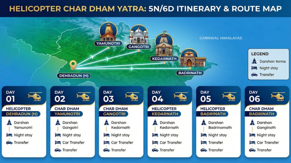 - Official Website: The ONLY website to book tickets is heliyatra.irctc.co.in.