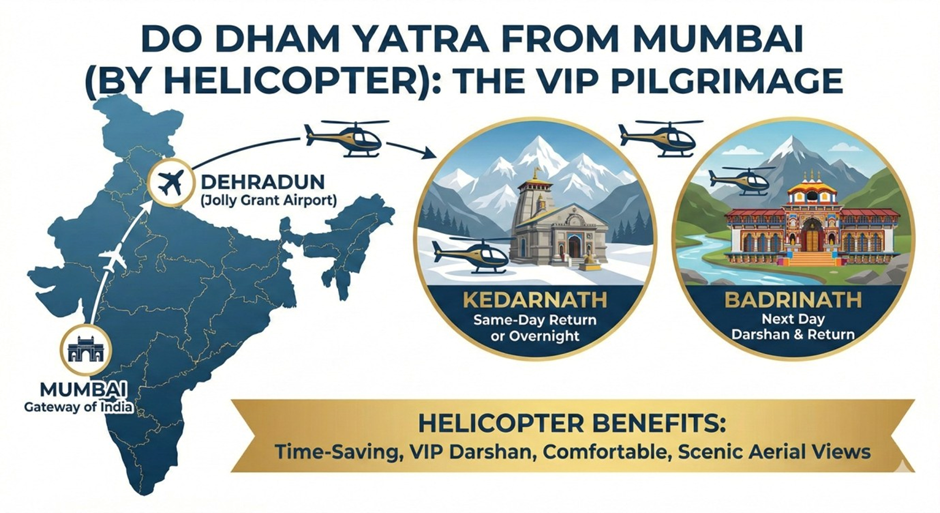This is the most preferred option for Do Dham Yatra from Mumbai by helicopter.