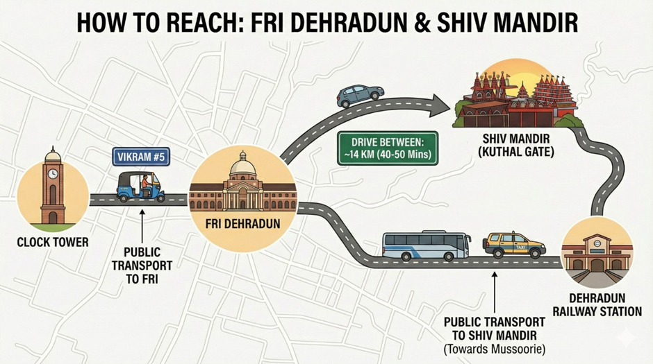 How to Reach FRI and Shiv Mandir?