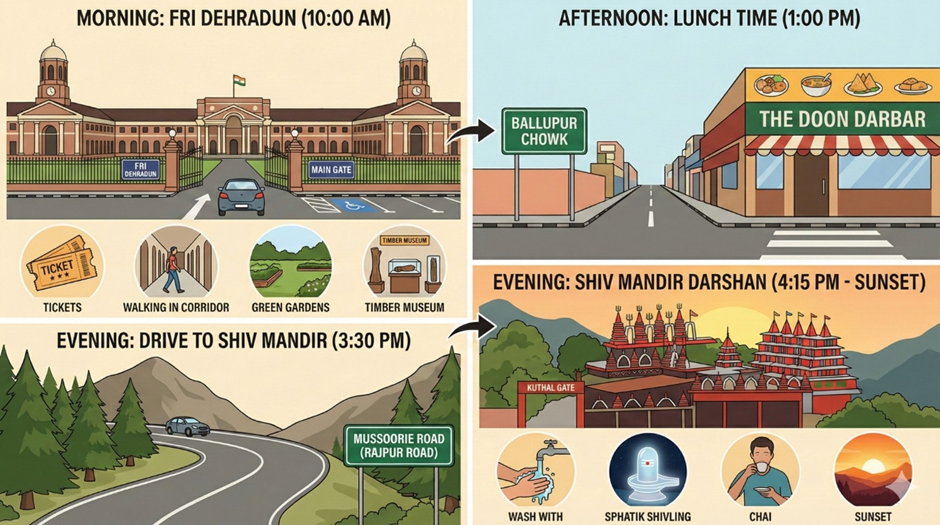 If you want to cover both FRI Dehradun and Shiv Mandir comfortably, follow this schedule: