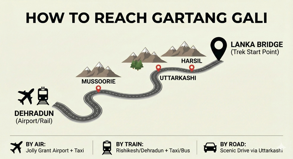 - From the airport, you must hire a taxi to reach Uttarkashi or Harsil.