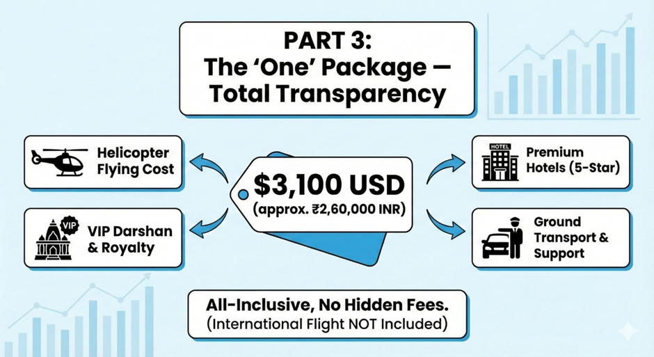 - The Darshan: They see the Jyotirlinga. They feel the energy. They are back in the chopper within 3 hours. No sleeping in the freezing cold at the top.