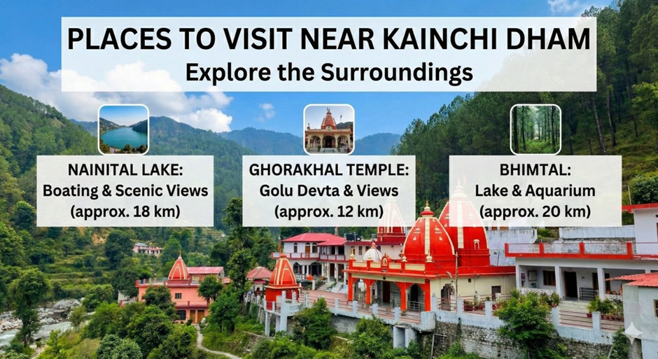 After visiting Kainchi Dham, you can explore several beautiful and peaceful places nearby. These destinations are perfect for nature lovers, spiritual seekers, and families.