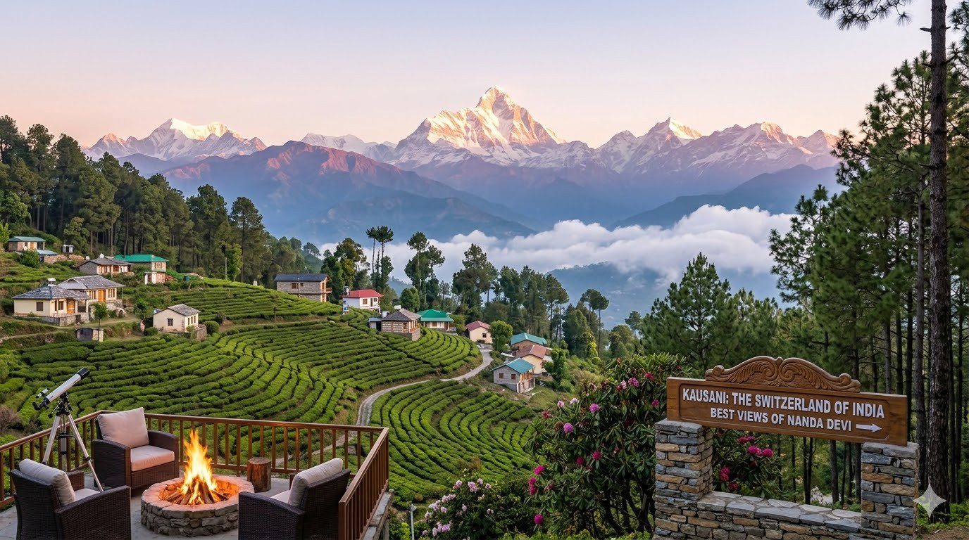 If you dream of peaceful Himalayan views and quiet hill towns, this Kausani Travel Guide is for you. Nestled in the mountains of Uttarakhand, Kausani is famous for its breath-taking landscapes and serene atmosphere. Often called the “Switzerland of India,” Kausani offers panoramic views of majestic Himalayan peaks. Visitors especially come here to witness the best views of Nanda Devi, one of the most stunning mountain peaks in the country. This Kausani Uttarakhand Travel Guide will help you explore the top attractions, activities, and travel tips. If you love exploring peaceful mountain destinations in Uttarakhand, you can also explore beautiful lake destinations like Bhimtal, Sattal, and Naukuchiatal. Why Kausani Is Called the Switzerland of India Kausani earned the title “Switzerland of India” because of its lush green valleys, pine forests, and snow-covered Himalayan views. The town gained global attention when Mahatma Gandhi visited the area in 1929. He was so impressed by its beauty that he compared it to Switzerland. Today, traveller’s visit Kausani to enjoy peaceful mountain landscapes and fresh Himalayan air. Best Views of Nanda Devi from Kausani One of the highlights of visiting Kausani hill station is the breath-taking sunrise over the Himalayas. From Kausani, travellers can see peaks such as: The golden sunrise reflecting on snow-covered mountains is one of the most unforgettable experiences in Uttarakhand Things to Do in Kausani Kausani is a peaceful hill station known for its stunning Himalayan views, tea gardens, and quiet natural surroundings. Visitors come here to relax, explore nature, and enjoy the scenic beauty of the Kumaon region. Here are some of the best things to do in Kausani during your trip. 1. Enjoy Himalayan Sunrise Views Watching the sunrise over the Himalayas is one of the most unforgettable experiences in Kausani. On clear mornings, you can see peaks like Nanda Devi, Trishul, and Panchachuli Peaks glowing in golden light. 2. Visit Anasakti Ashram This peaceful ashram is where Mahatma Gandhi stayed during his visit to Kausani. The place offers beautiful mountain views and a calm atmosphere for meditation and reflection. 3. Explore Kausani Tea Estate Kausani is known for its organic tea gardens. Visitors can walk through the lush plantations, learn about tea production, and enjoy fresh Himalayan tea while admiring the surrounding scenery. 4. Visit Baijnath Temple Located about 16 km from Kausani, this ancient temple complex dedicated to Lord Shiva is known for its beautiful stone architecture and peaceful riverside setting. 5. Take Nature Walks and Photography Tours The forests and scenic landscapes around Kausani are perfect for nature walks and photography. The peaceful environment makes it ideal for travellers who want to relax and connect with nature. Best Time to Visit Kausani The best time to visit Kausaniis between March and June and September to November. During these months, the weather is pleasant and the skies are clear, offering stunning views of the Himalayan peaks. It is the perfect time for sightseeing, nature walks, and enjoying the famous best views of Nanda Devi from Kausani. Spring & Summer (March – June) This is one of the most popular seasons to visit Kausani. Temperatures range between 10°C and 25°C, making it ideal for exploring tea gardens, temples, and scenic viewpoints. Monsoon (July – August) The monsoon season brings lush greenery and fresh mountain air. While the landscapes look beautiful, heavy rainfall can sometimes affect travel plans. Autumn (September – November) Autumn offers some of the clearest Himalayan views, including peaks like Trishul and Panchachuli Peaks. Winter (December – February) Winters in Kausani are cold, with temperatures occasionally dropping close to 0°C. The town becomes peaceful and sometimes experiences light snowfall, making it a great time for travellers who enjoy quiet mountain destinations. How to Reach Kausani Reaching Kausani is quite convenient as it is well connected by road, rail, and air. Located in the Bageshwar district, this scenic hill station can be accessed from major towns in the Kumaon region. By Road Kausani has good road connectivity with nearby cities like Almora, Ranikhet, and Nainital.Regular buses and taxis operate from these towns, making road travel the most convenient way to reach Kausani. By Train The nearest railway station is Kathgodam Railway Station, located about 135 km from Kausani. From Kathgodam, travellers can hire taxis or take buses to reach the hill station. By Air The closest airport is Pantnagar Airport, which is around 170 km away. Taxis and private cabs are available from the airport to reach Kausani. Nearby Attractions While visiting Kausani, travellers can explore several beautiful destinations located nearby. These places offer scenic landscapes, cultural experiences, and stunning Himalayan views, making your trip to the Kumaon region even more memorable. 1. Baijnath Located about 16 km from Kausani, Baijnath is famous for the ancient Baijnath Temple. The temple complex sits beside the Gomti River and is known for its historic stone architecture. 2. Bageshwar Bageshwar is a sacred town where the Saryu River meets the Gomti River. The town is known for temples, scenic surroundings, and its spiritual significance. 3. Ranikhet About 60 km away, Ranikhet is another beautiful hill station known for its green meadows, pine forests, and stunning Himalayan views. It is often called the Queen’s Meadow. 4. Almora Almora is a charming hill town known for its rich culture, traditional markets, and panoramic views of the Himalayas. Visitors can explore local handicrafts and enjoy the peaceful mountain atmosphere. 5. Binsar Nature lovers should visit Binsar Wildlife Sanctuary, famous for its dense forests and breath-taking Himalayan viewpoints. It is a great destination for trekking, bird watching, and nature photography. Discover Uttarakhand the 