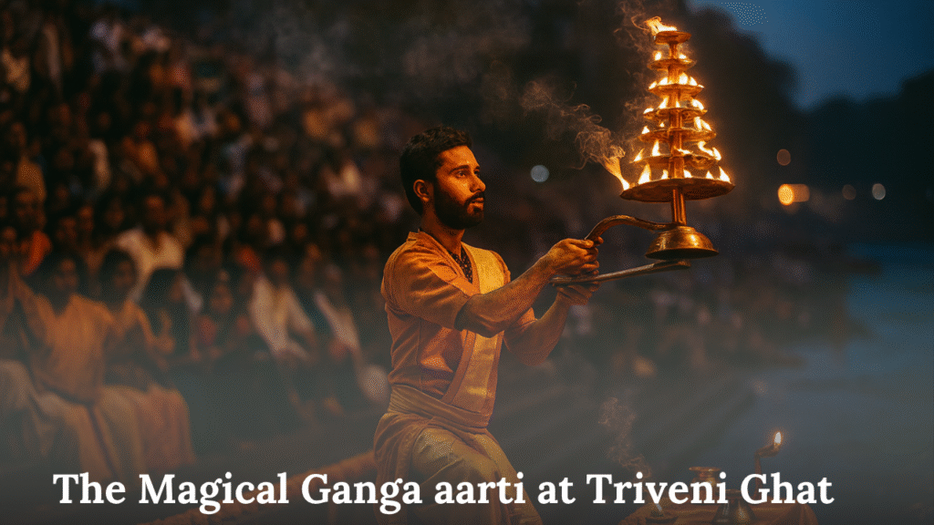 The Ganga Aarti at Triveni Ghat is a peaceful and soul-touching experience.